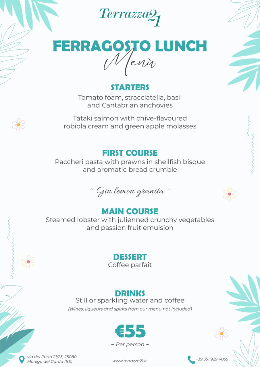 At Ristorante Terrazza21, every dish pays tribute to traditional cuisine, elevated by a touch of creativity. Our chefs skillfully reimagine authentic flavors, using fresh ingredients and refined techniques to offer a unique dining experience. Whether it’s a light lunch or a special dinner, let yourself be delighted by the perfect fusion of tradition and innovation, all while enjoying a breathtaking lake view.